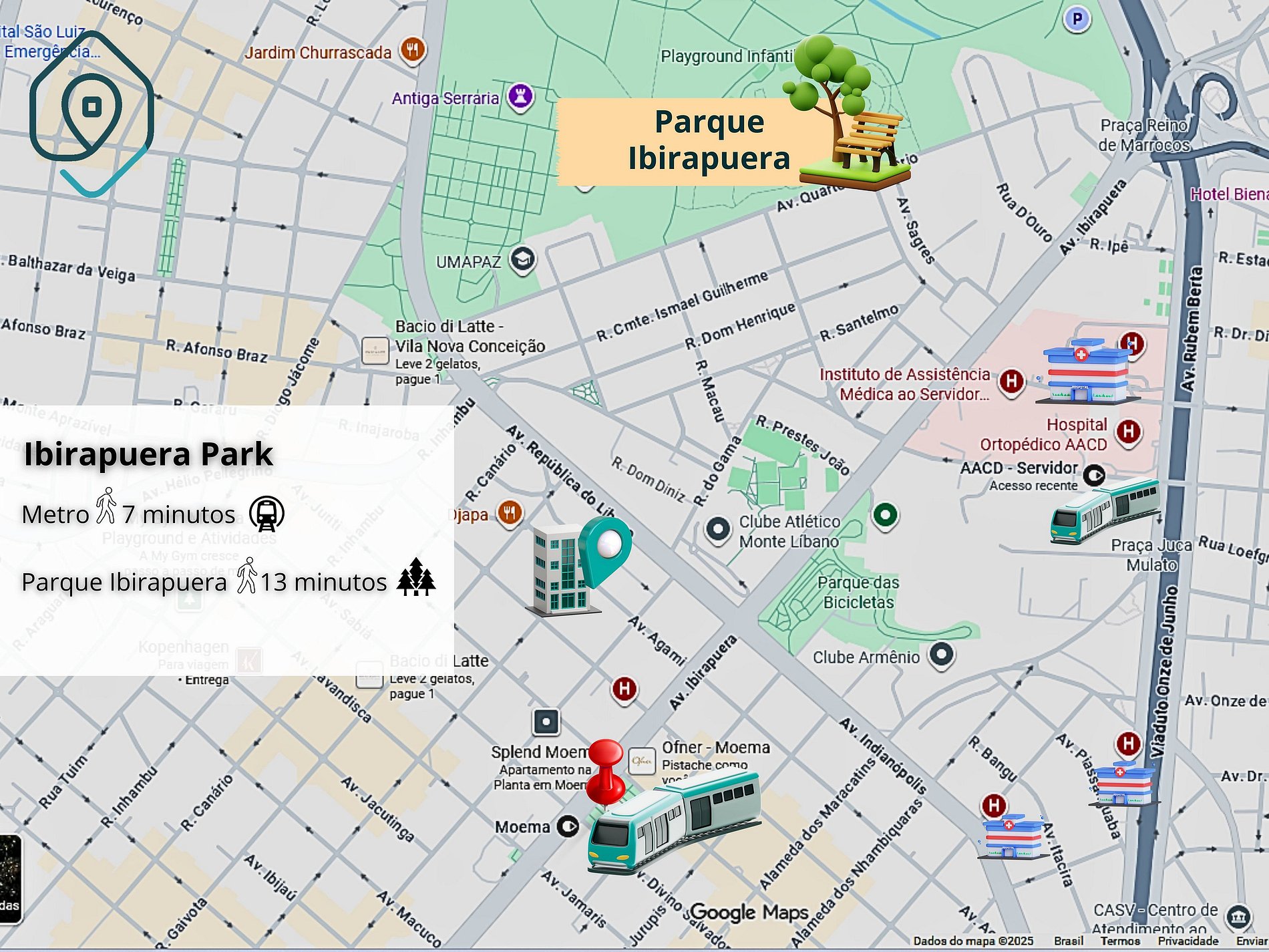 Apenas 1 km do Parque Ibirapuera, perfeito para caminhadas, esportes e lazer ao ar livre