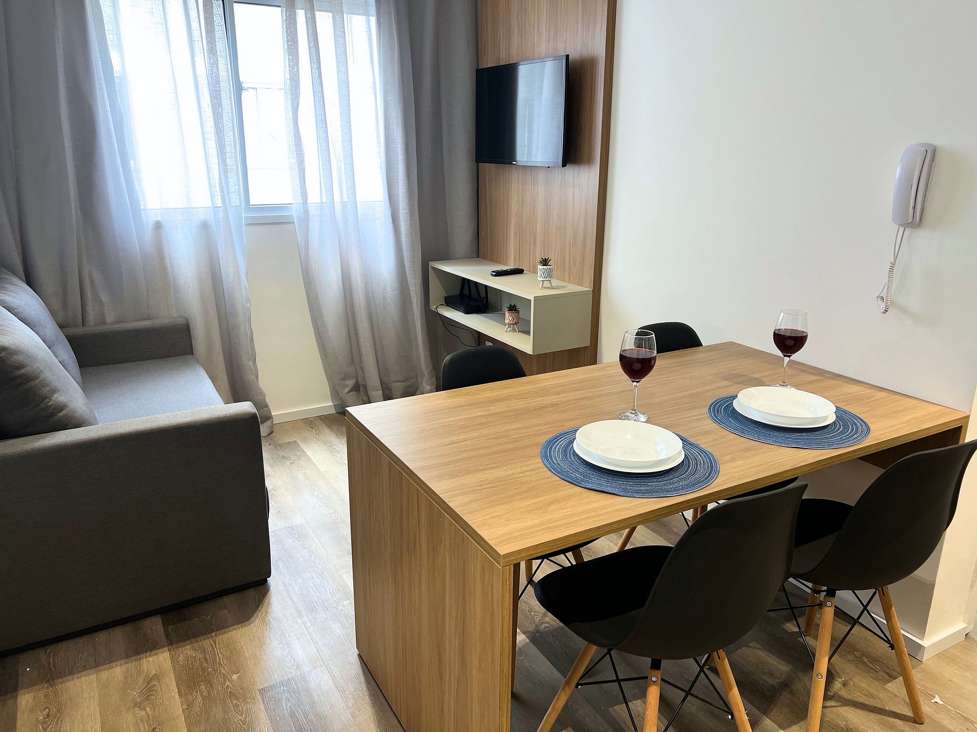 Studio completo: cama de casal, sofá-cama, Wi-Fi rápido, Smart TV, cozinha compacta