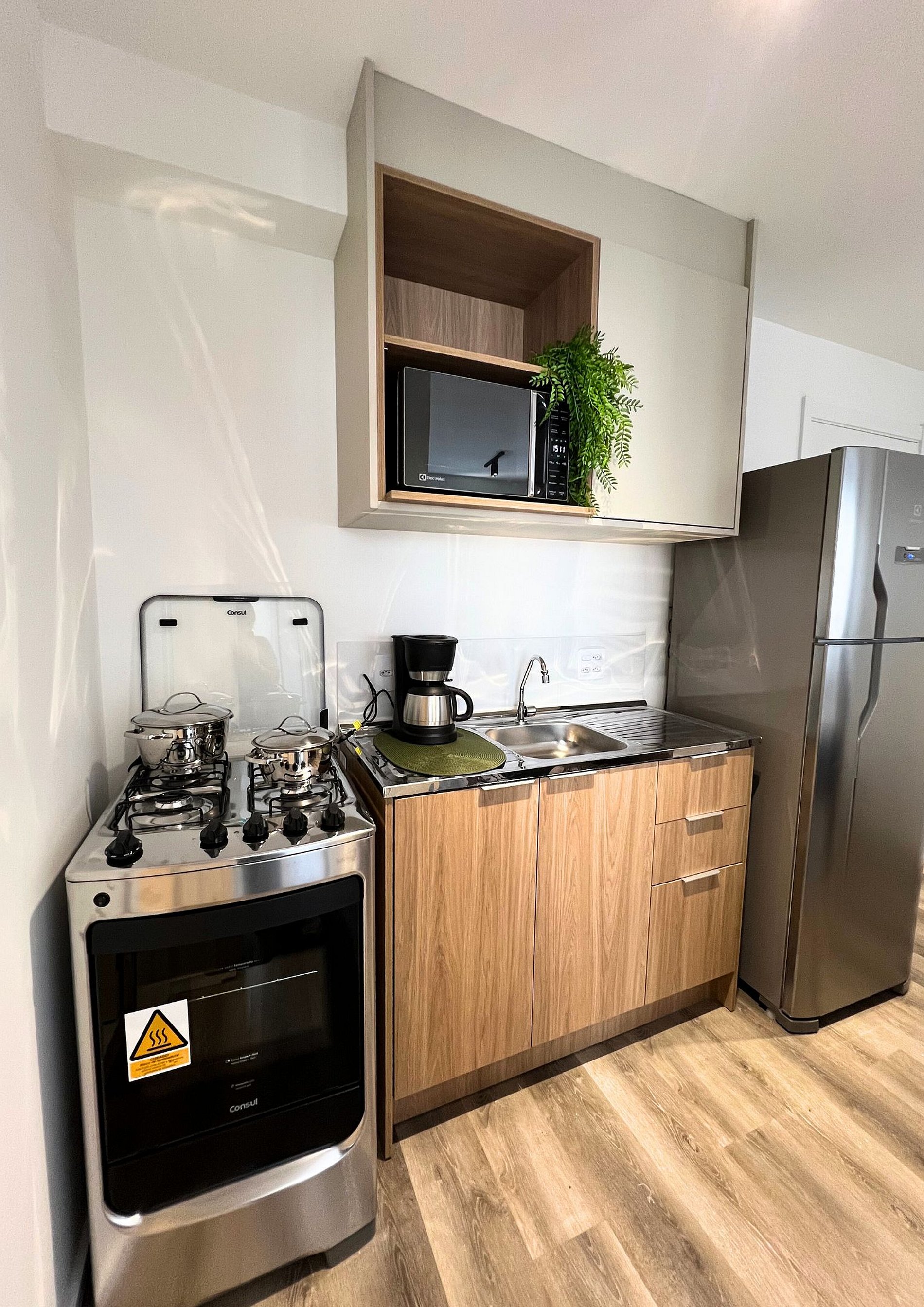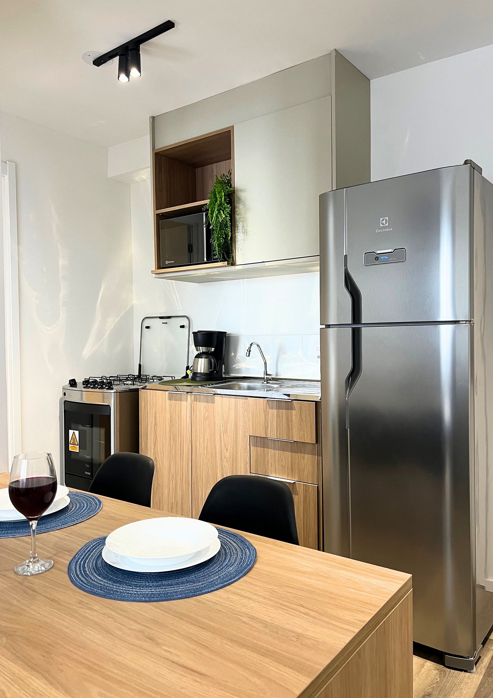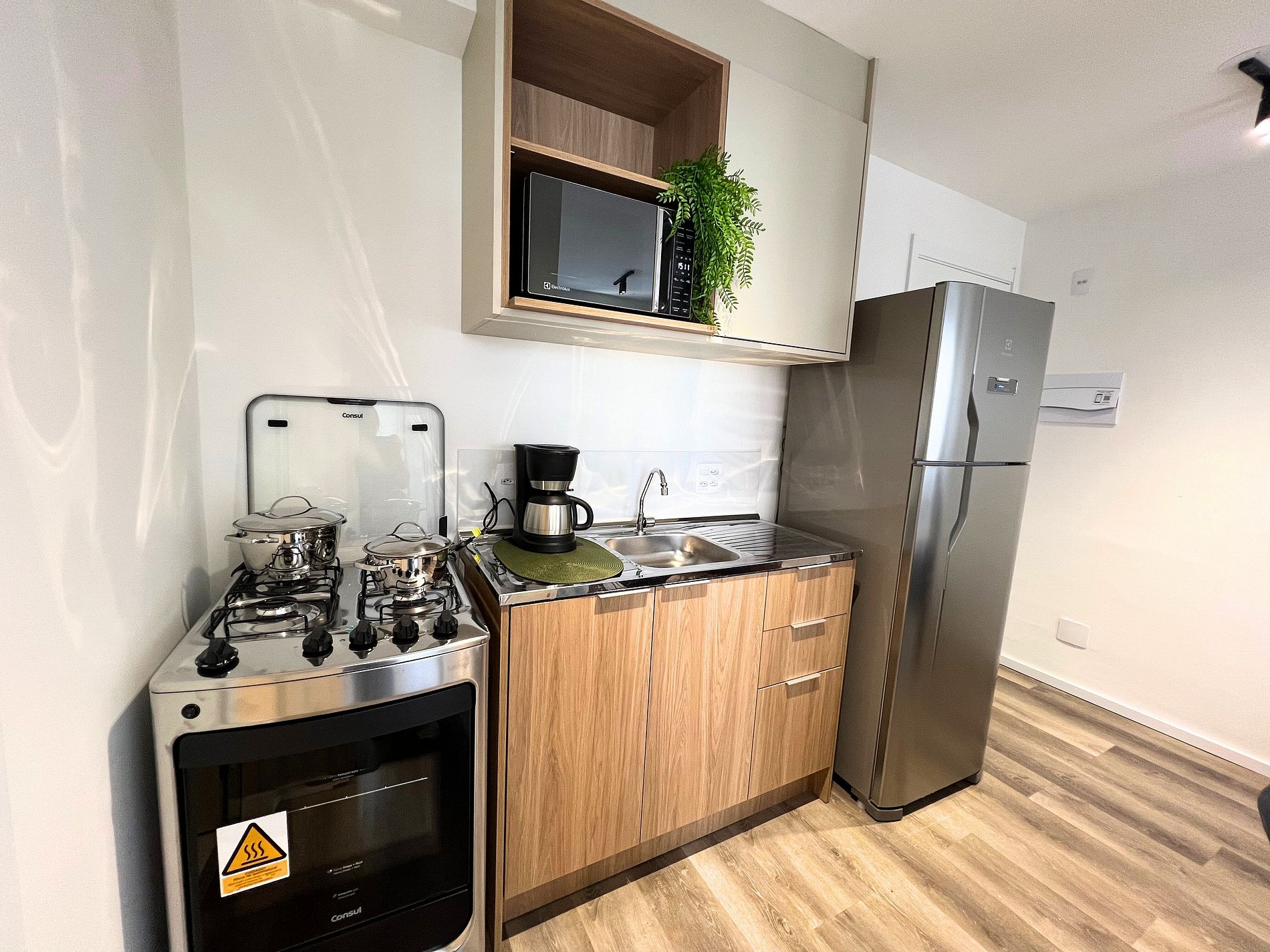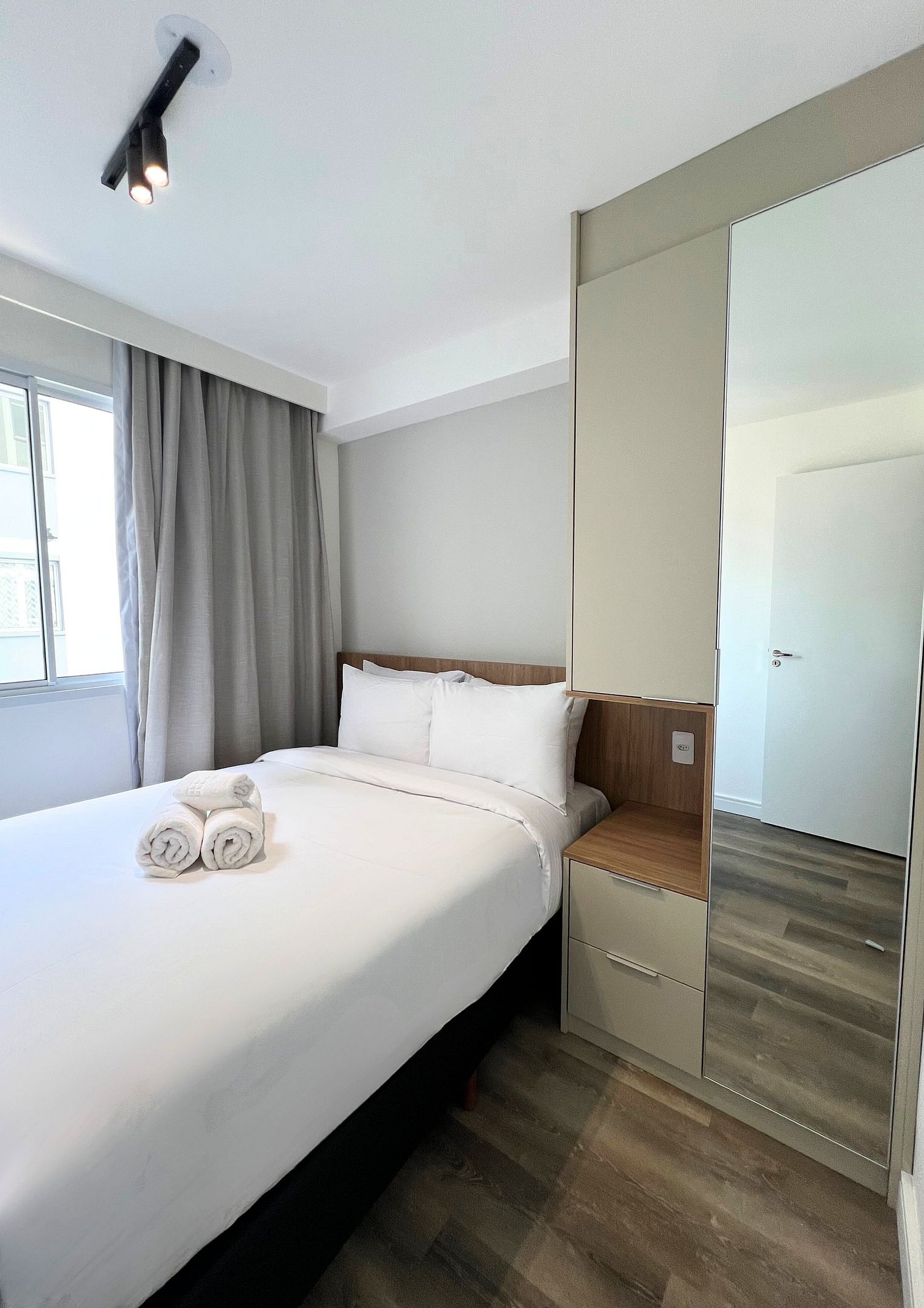 Nosso studio combina praticidade e conforto em um só lugar. Localizado ao lado do Metrô República, oferece fácil acesso a toda São Paulo. O espaço é moderno e bem equipado, com cama de casal confortável, sofá-cama funcional, cozinha compacta completa, Wi-Fi rápido e Smart TV. O chuveiro de alta pressão garante um banho relaxante após um dia intenso na cidade. Além disso, o prédio conta com piscina, academia e lavanderia, trazendo ainda mais comodidade para sua estadia.