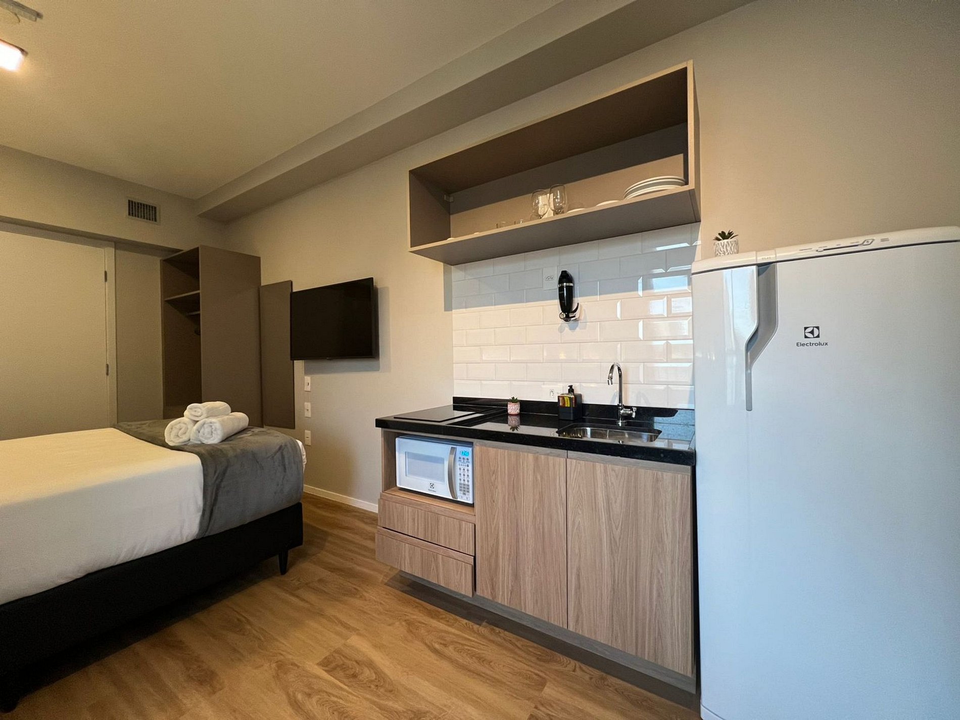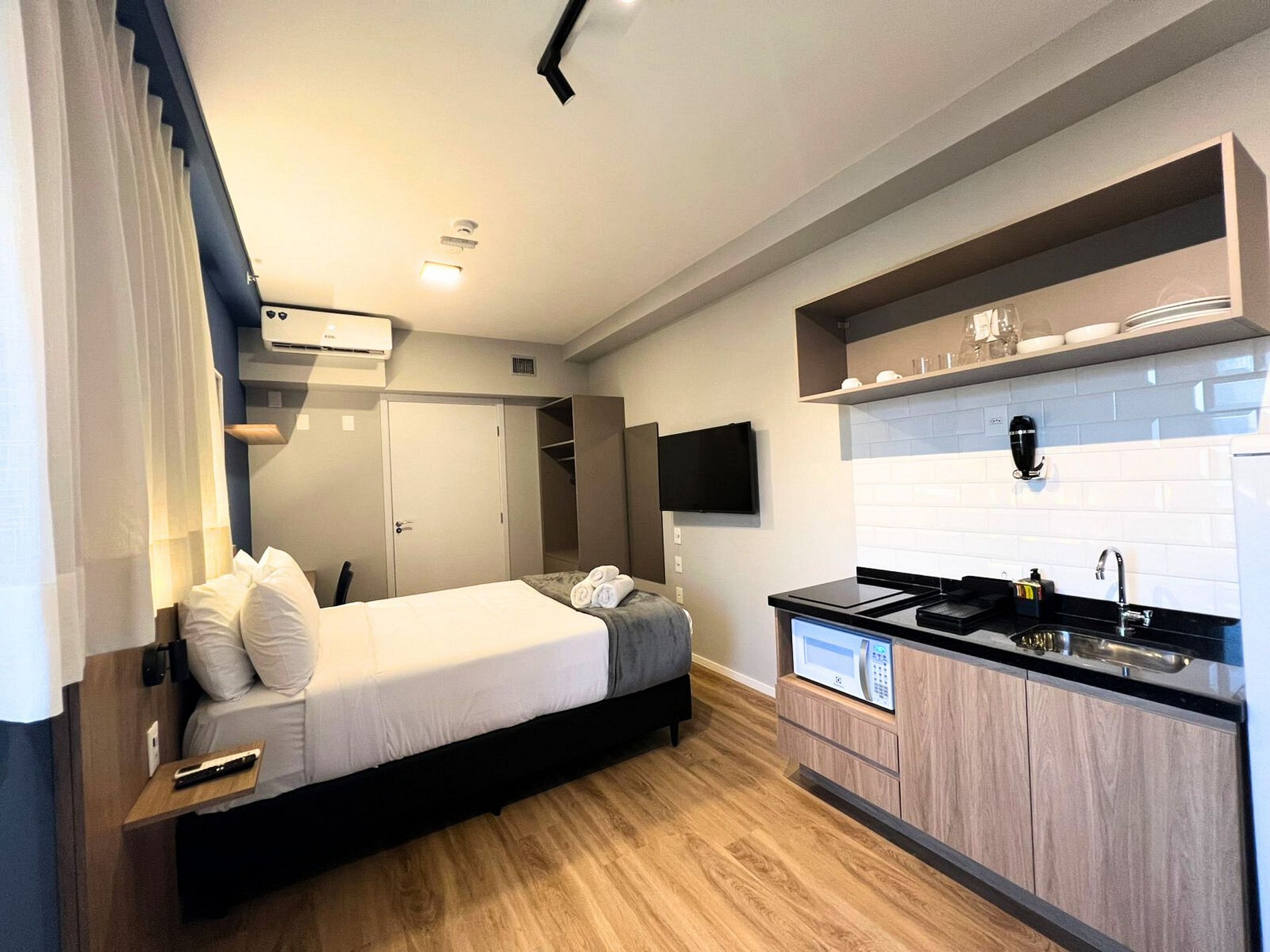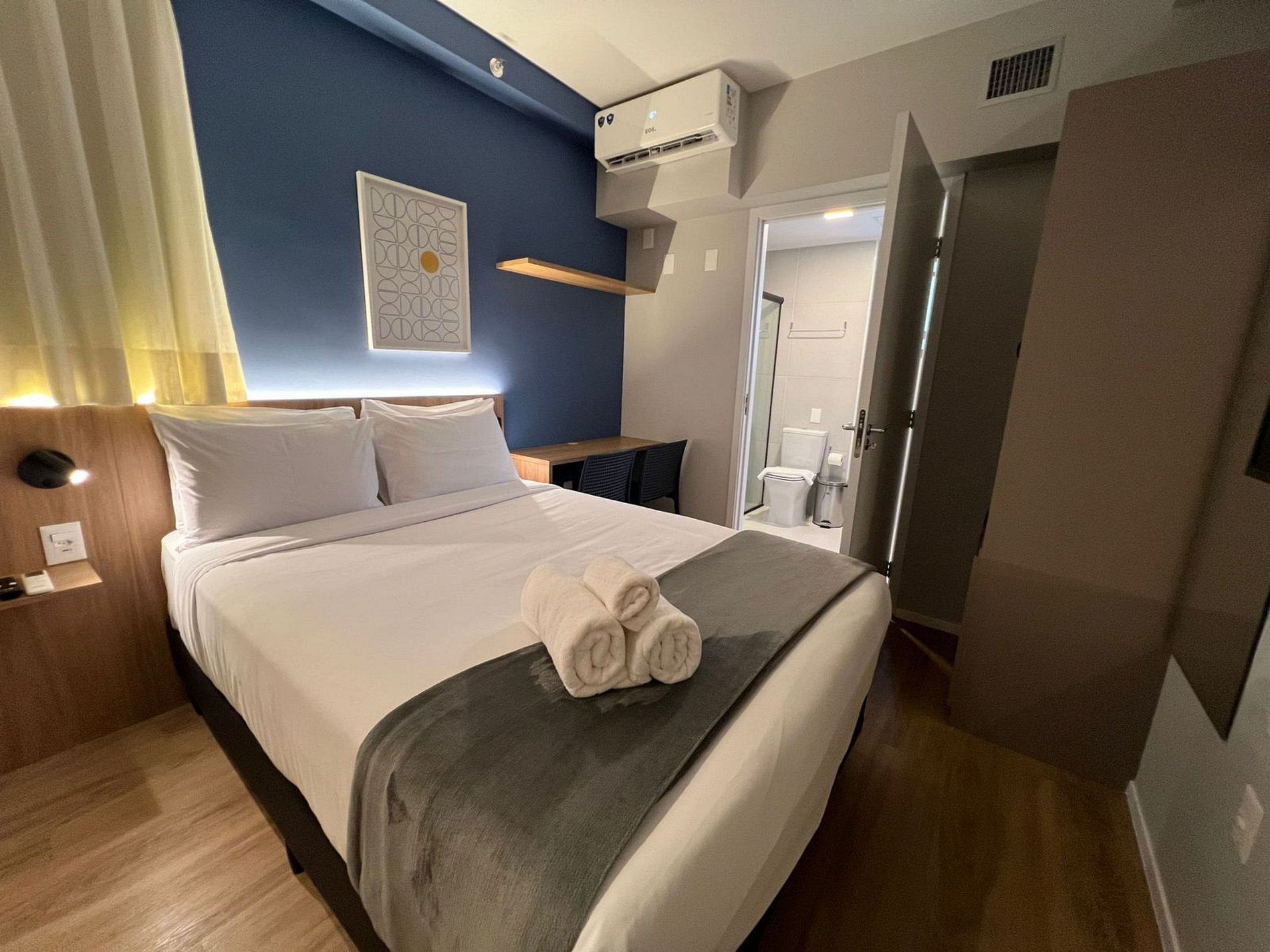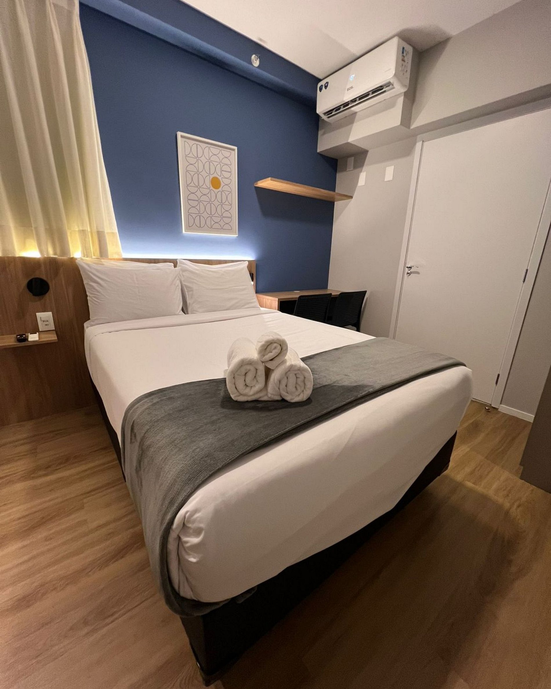 Espaço funcional para trabalho e descanso uma opção prática, bem localizada e pronta para uma estadia tranquila e confortável.