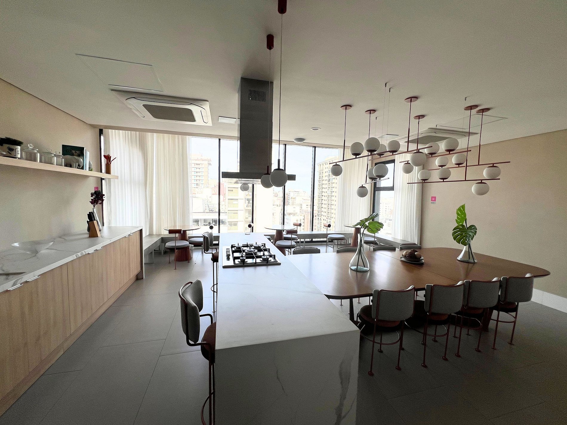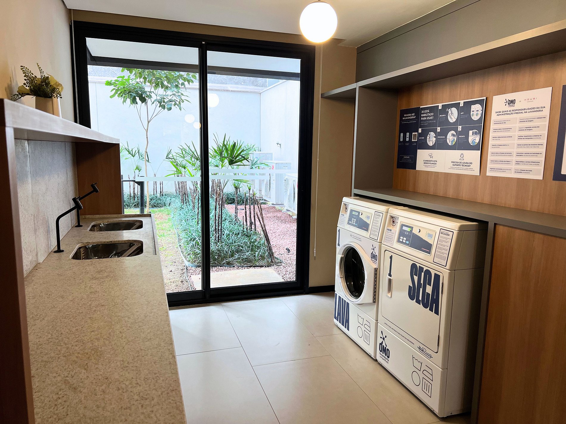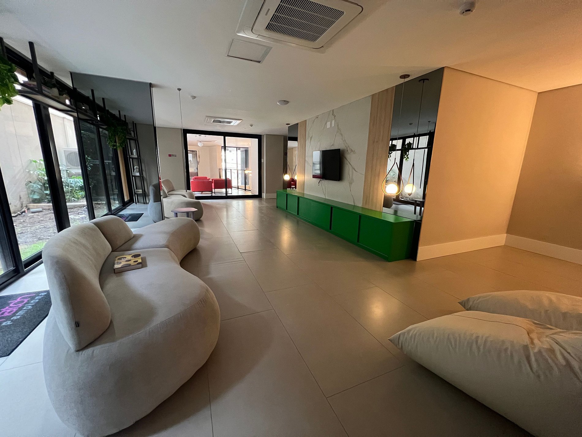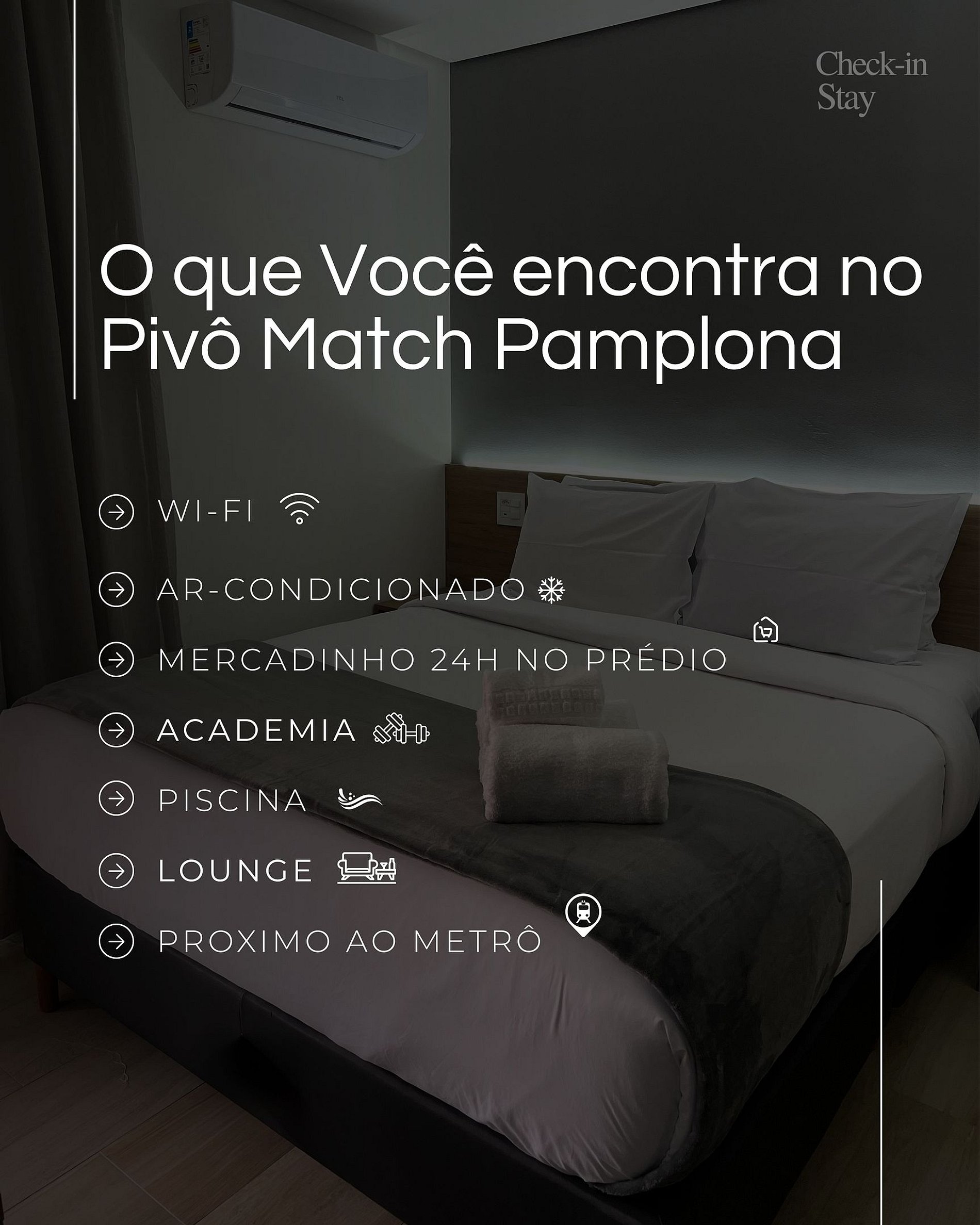 O Pivô Pamplona oferece Wi-Fi em todas as áreas, inclusive nos quartos com varanda. Conta com lavanderia equipada, lounges modernos, academia completa e área externa para exercícios. No último andar, piscina, salão de festas e cozinha aberta. No térreo, cafeteria e loja de conveniência 24 horas.
