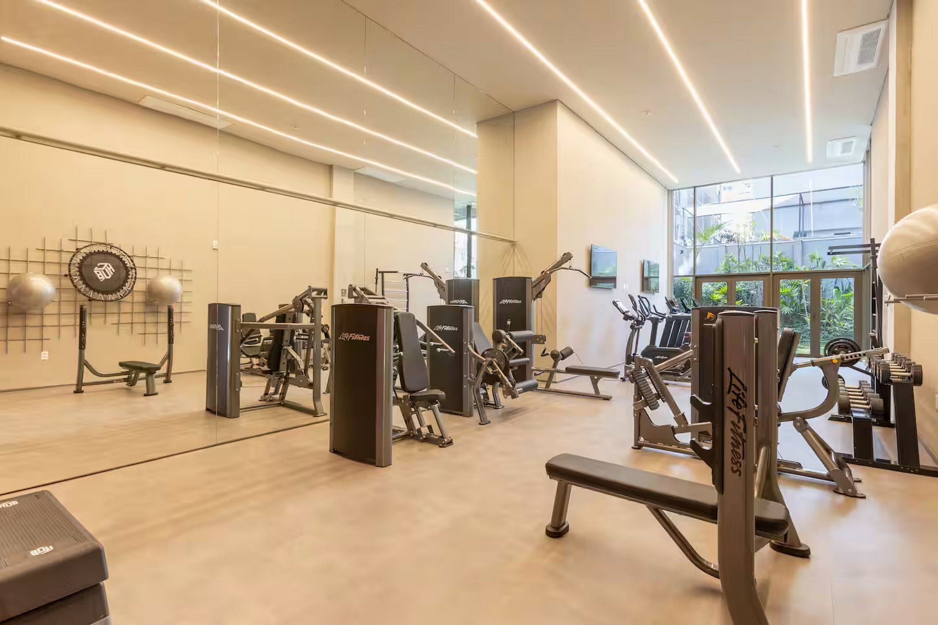 • Academia completa – espaço moderno, arejado e com vista para o jardim, perfeito para manter sua rotina de exercícios sem sair de casa.