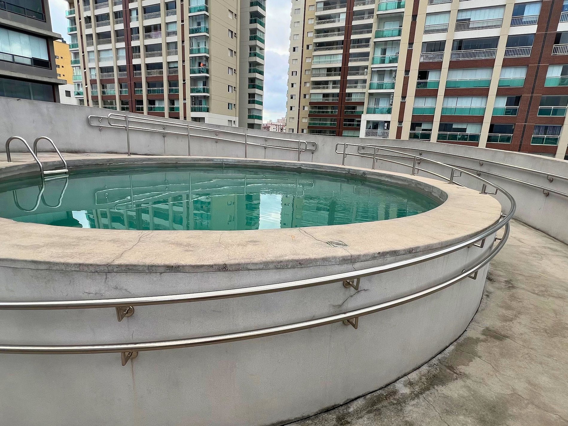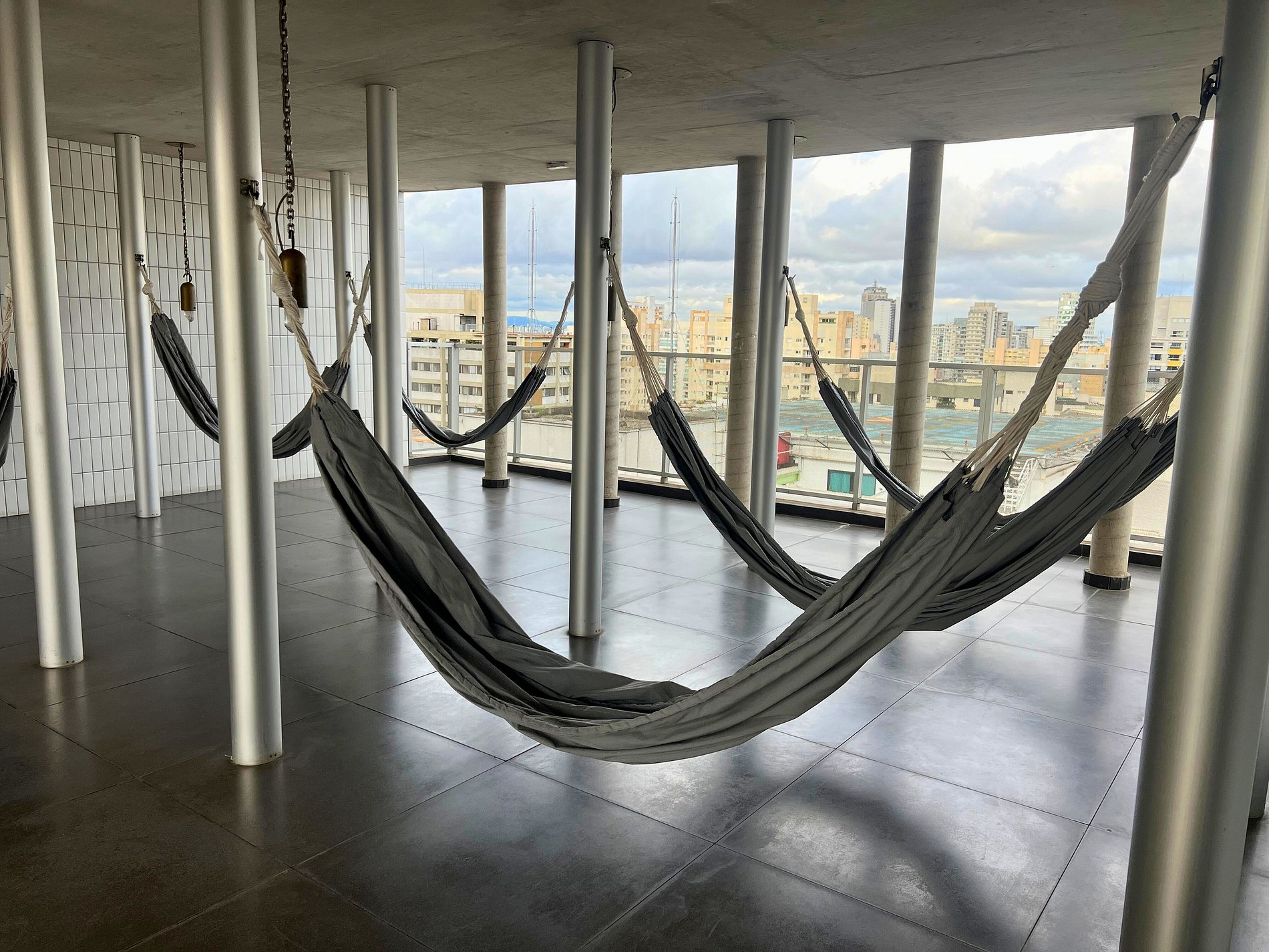 No studio conta com: Ar-condicionado split Cama box casal com enxoval completo durante sua estádiaTV Smart | Wi-FiArmário, espelho de corpo inteiro